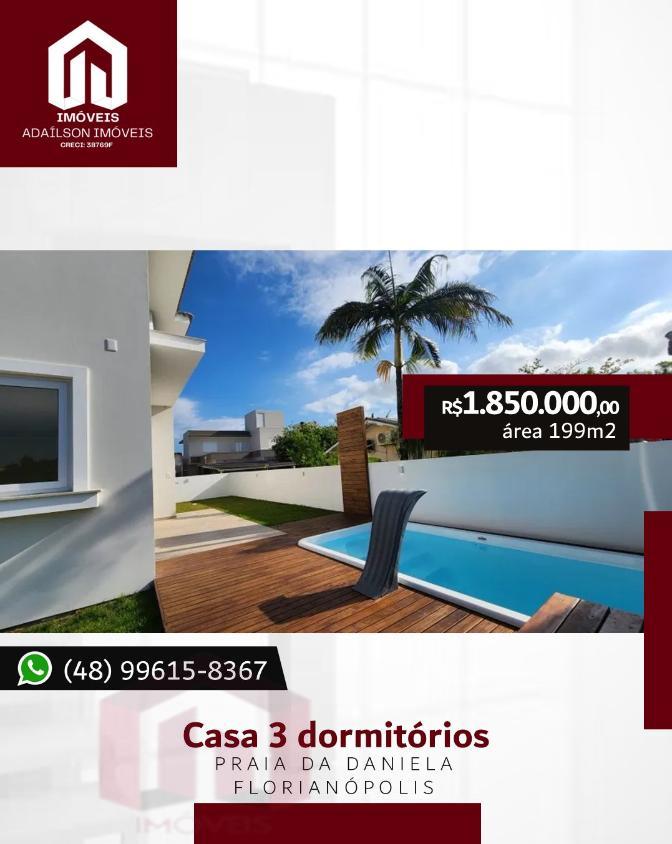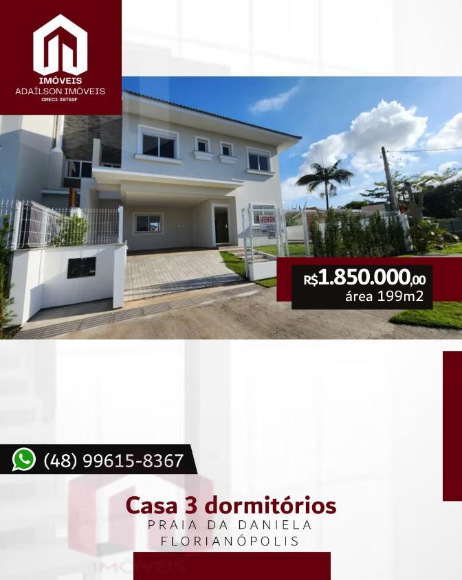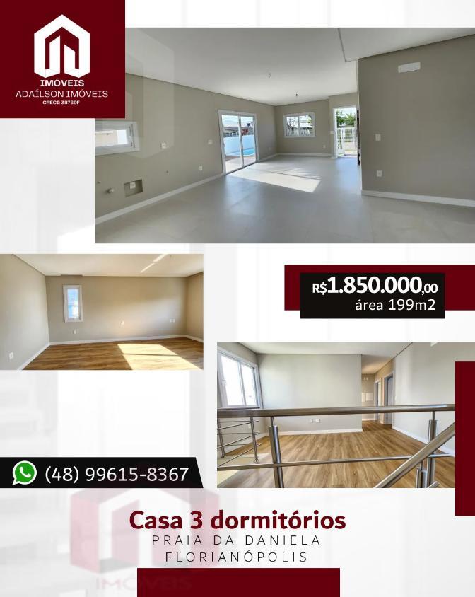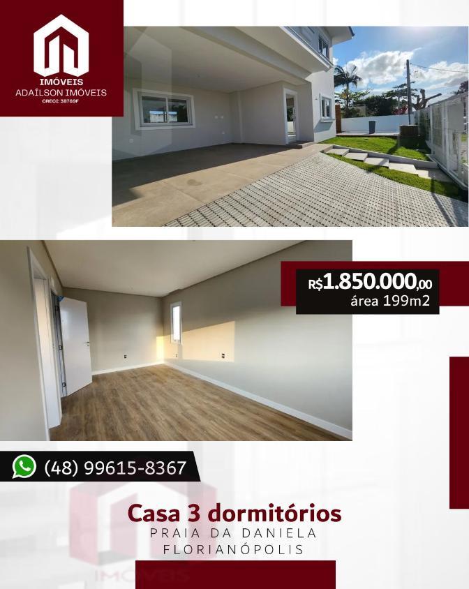 Casa para venda na Praia da Daniela, com 196,09 m², casa 01 com 215,15m² de terreno, 3 suítes, sendo uma com espaço para closet, sala íntima ou escritório no andar superior; térreo: ambiente de convivência todo integrado, lavado, área de serviço e garagem para 2 veículos.