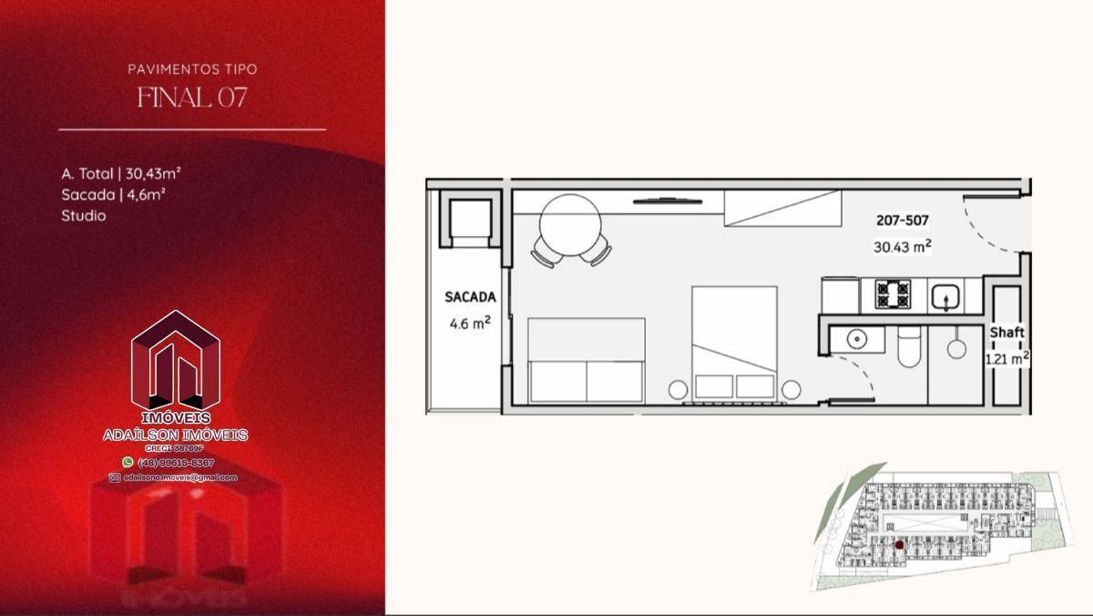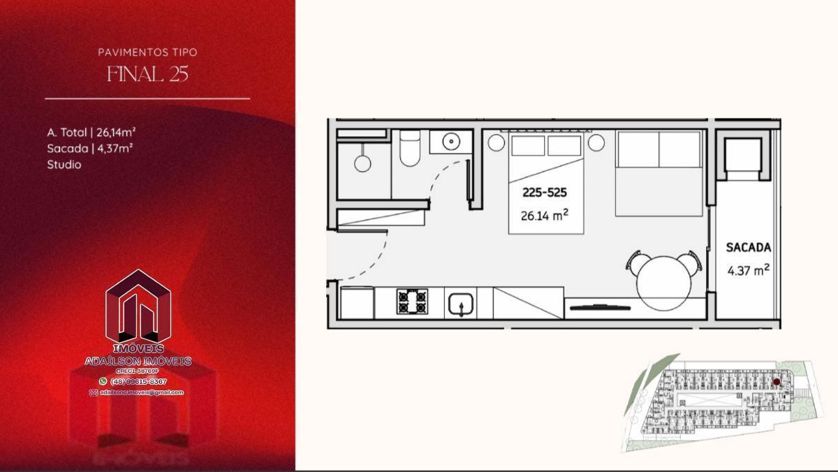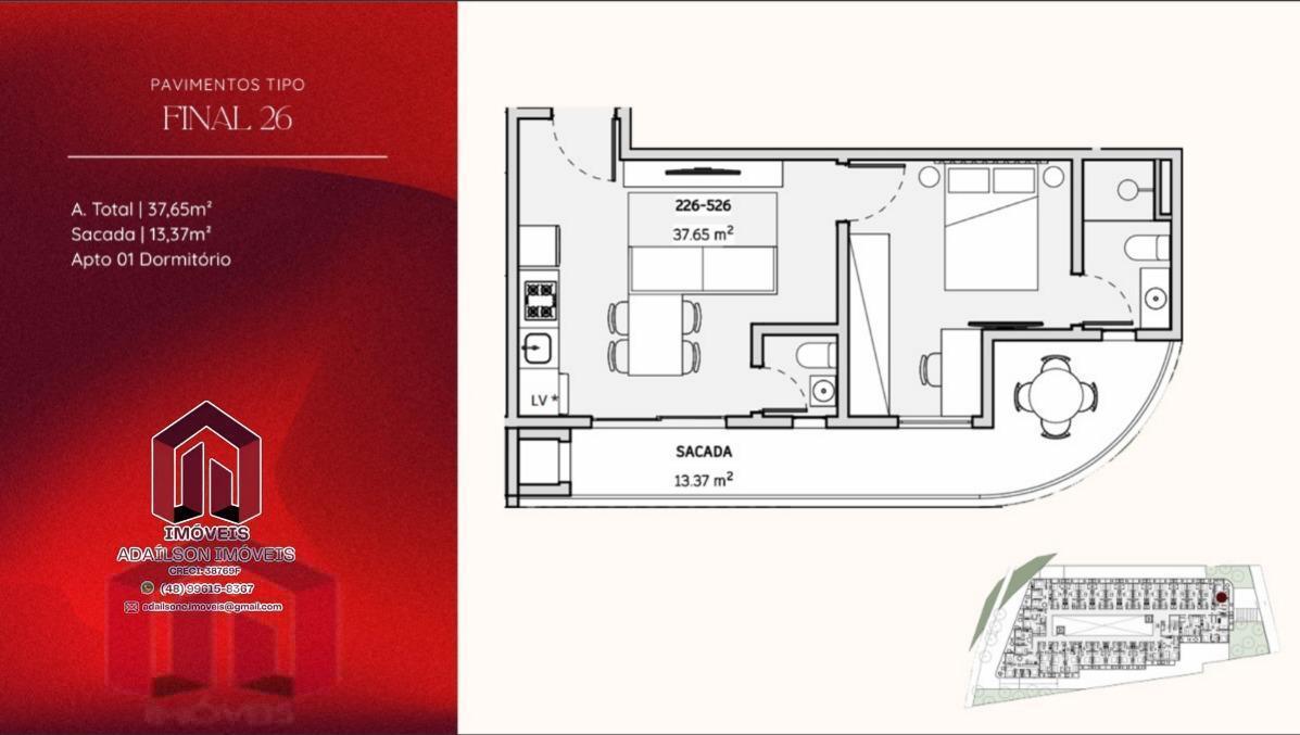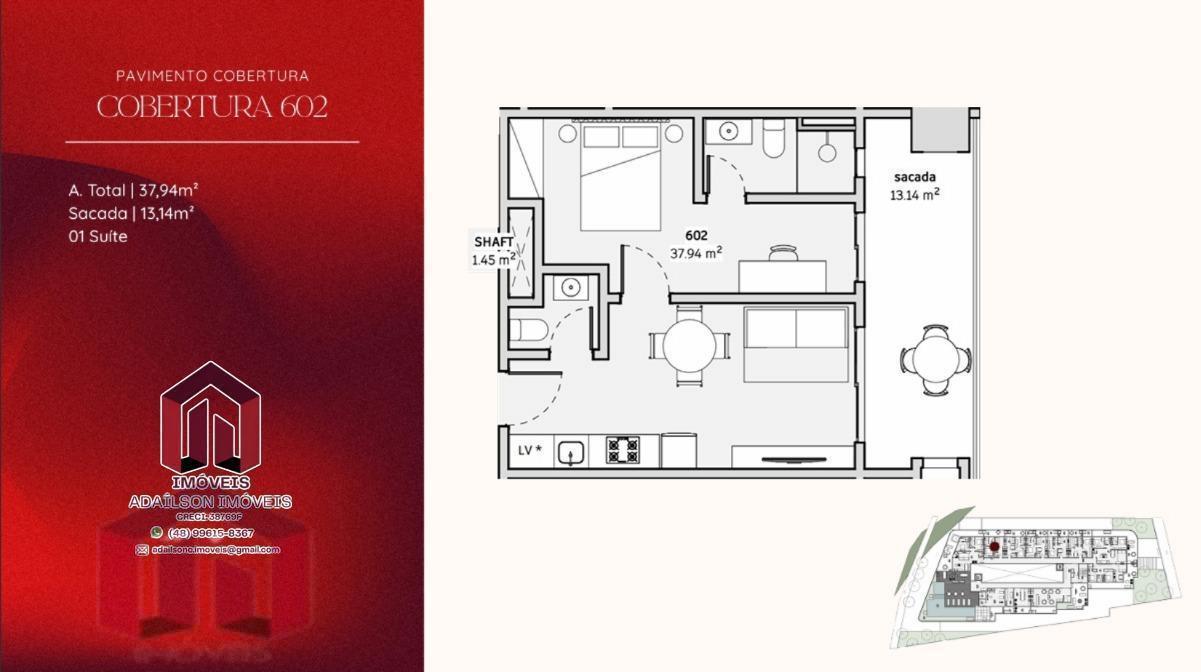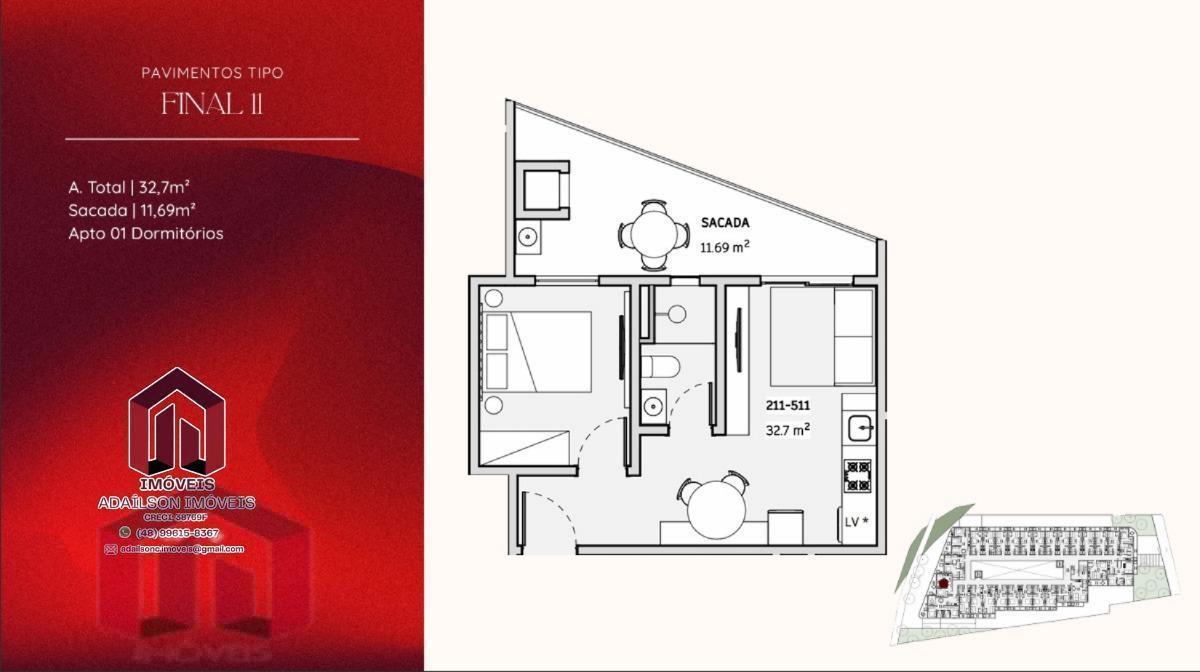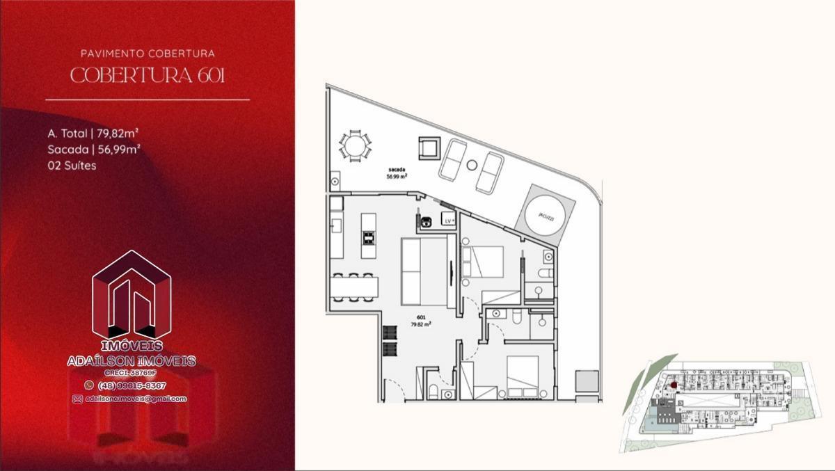 COBERTURA COM 1 DORMITÓRIO NO ONDARA RESIDENCE, CANAJURÊ, FLORIANÓPOLIS/SC