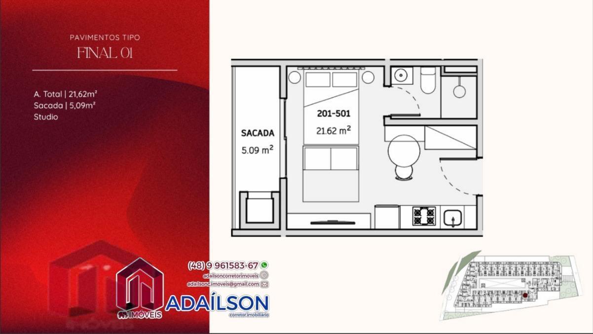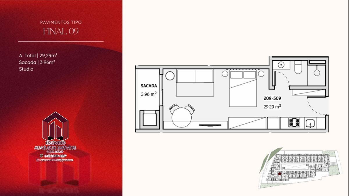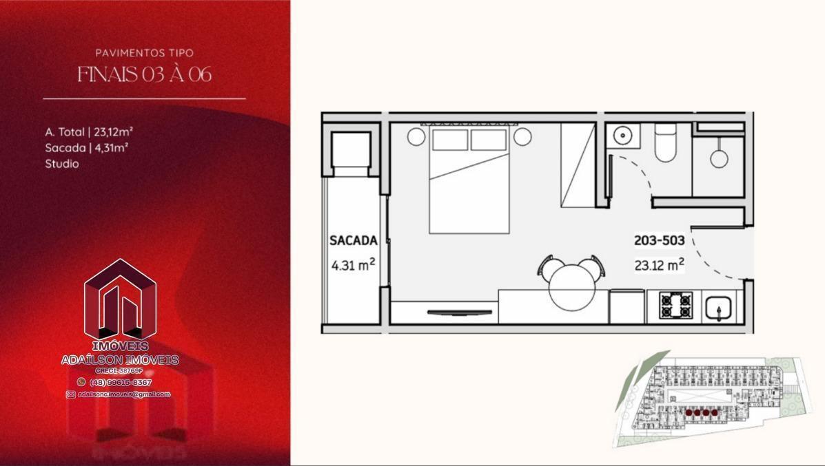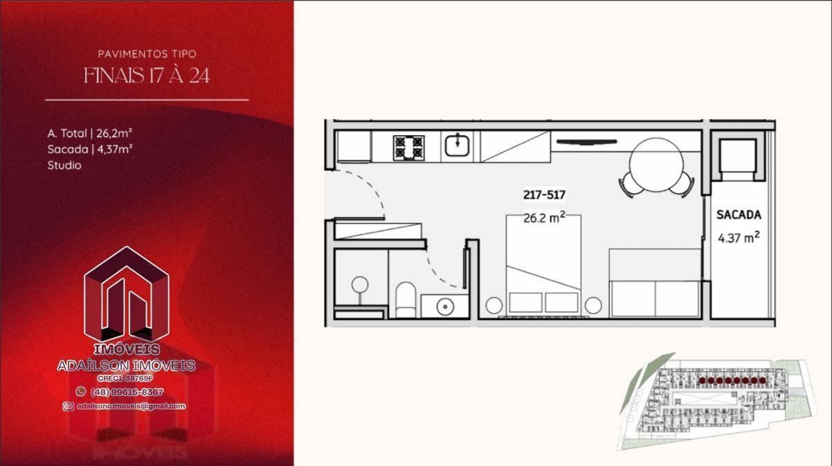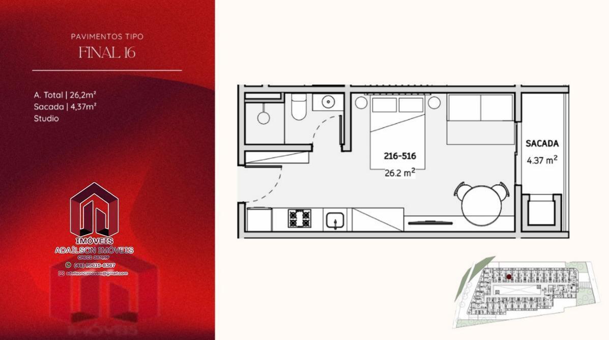 COBERTURA COM 1 DORMITÓRIO NO ONDARA RESIDENCE, CANAJURÊ, FLORIANÓPOLIS/SC