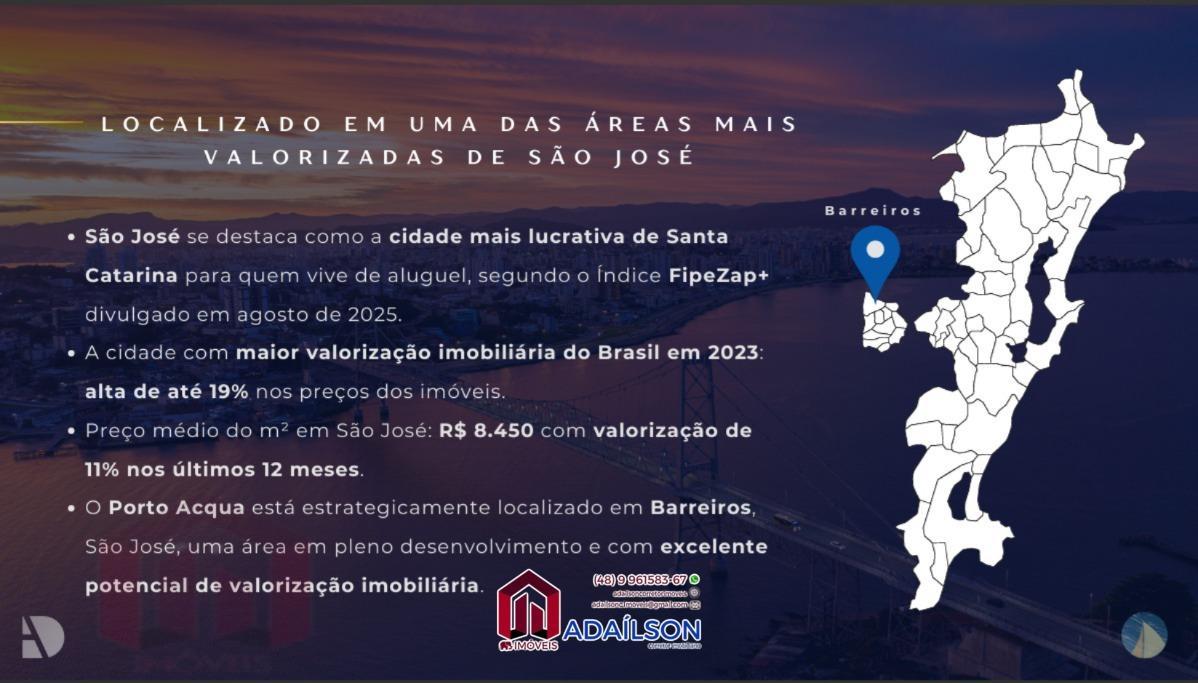 O Porto Acqua é o lugar ideal para famílias que buscam o equilíbrio perfeito entre conforto, conveniência e proximidade com os principais centros urbanos. Localizado em Barreiros, São José, este novo empreendimento oferece a combinação perfeita de um estilo de vida prático e acolhedor, a um valor acessível.
