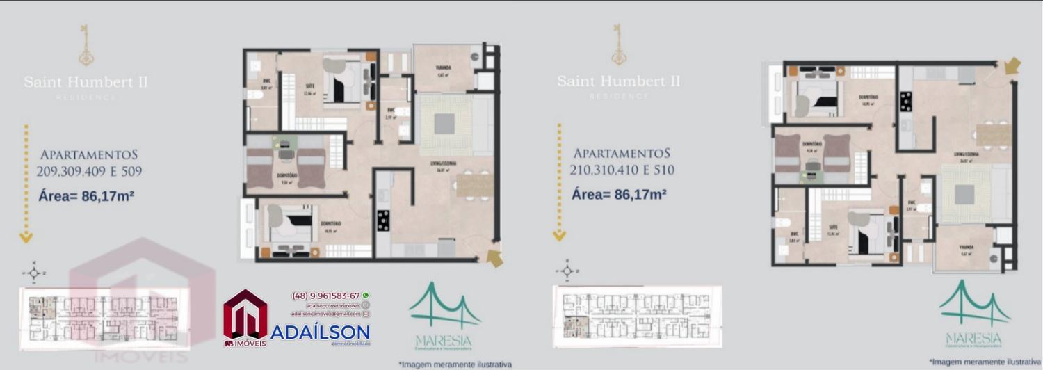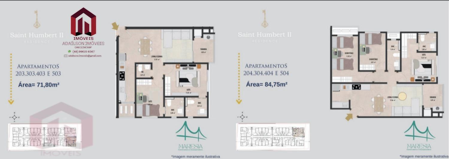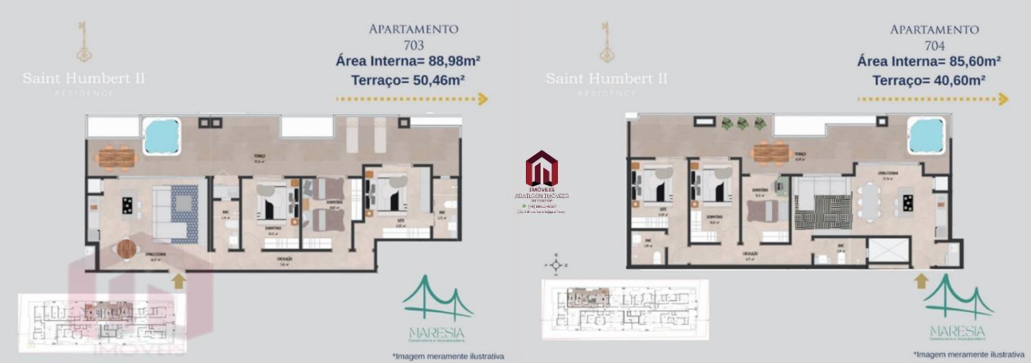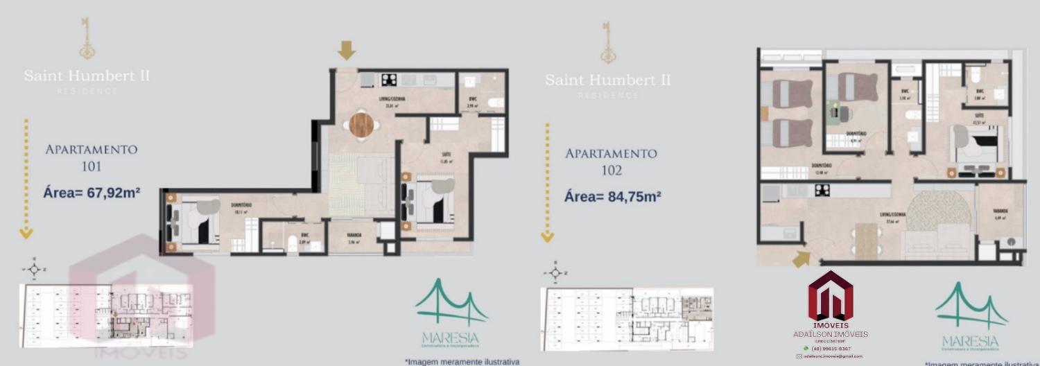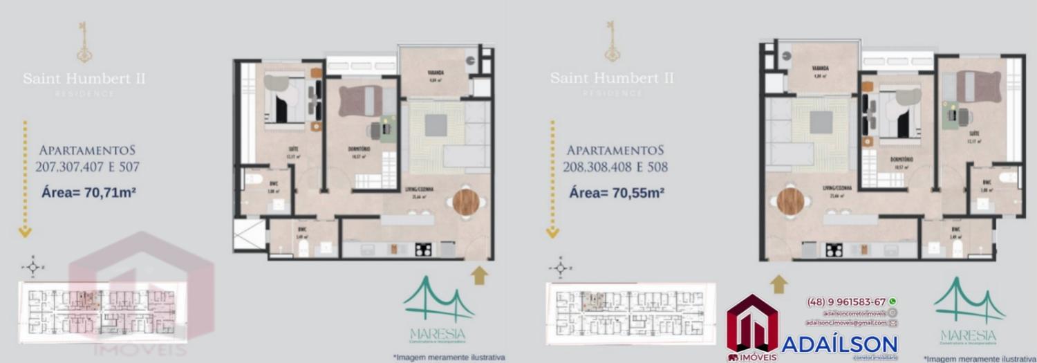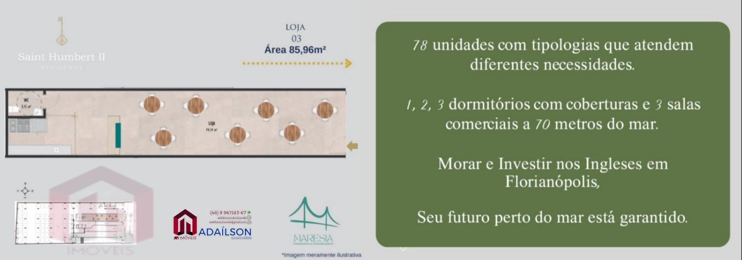 O Saint Humbert, da Maresia Construtora, oferece unidades de 81 m² com 3 quartos, sendo um deles suíte, nos Ingleses, em Florianópolis. O projeto contempla uma área privativa bem distribuída, com sacada equipada com churrasqueira e acabamento de alto padrão.