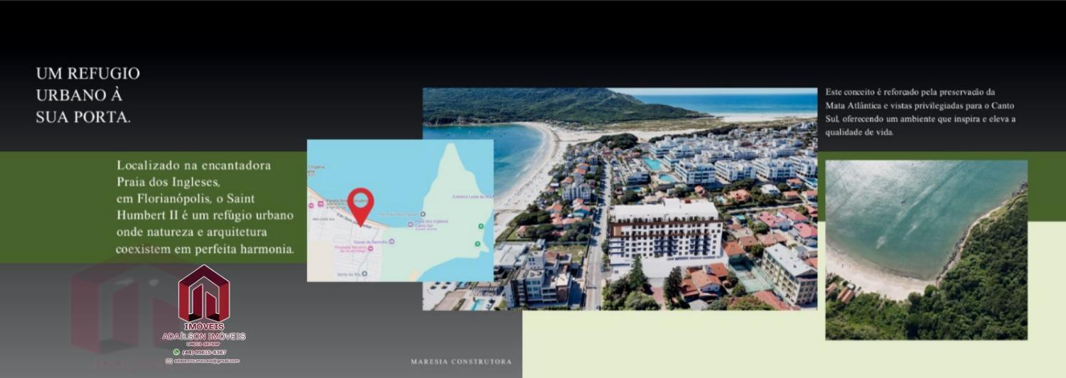 Localizado a apenas 150 metros da Praia dos Ingleses, o Saint Humbert garante uma vista para o mar nas unidades. Entre os diferenciais do empreendimento, destacam-se o controle de acesso facial no condomínio,a fechadura por biometria nos apartamentos, além de vagas rotativas para carros elétricos.